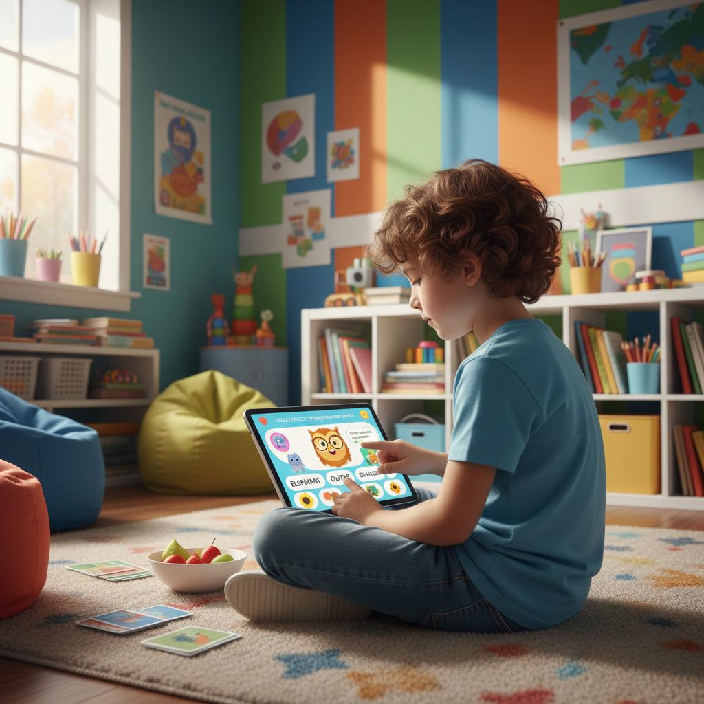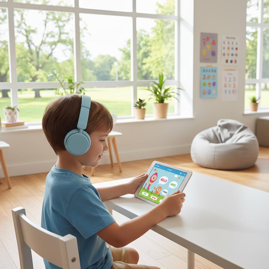 Dziecko testuje skuteczną platformę do nauki angielskiego online – pełne skupienie i nowoczesne narzędzia edukacyjne.