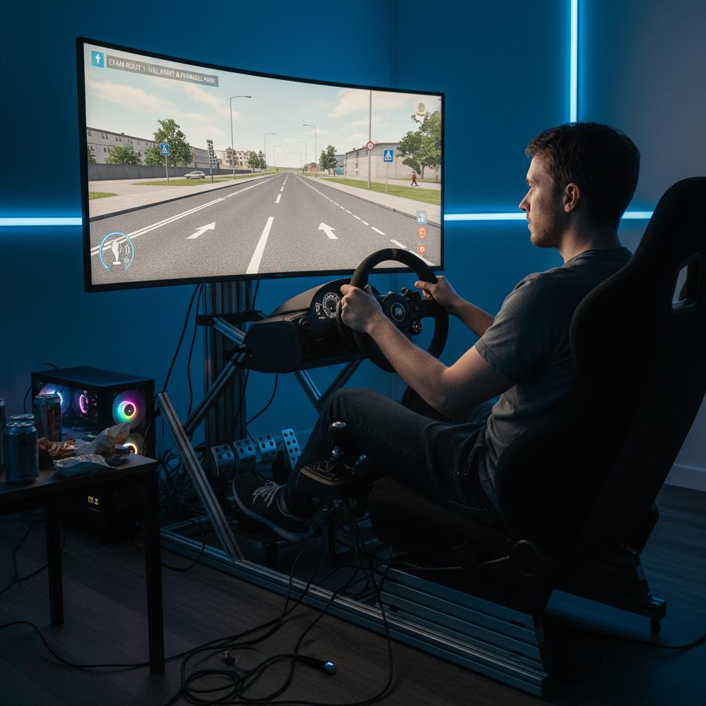 Specjalistyczne urządzenie lub program komputerowy odzwierciedlający warunki drogowe – narzędzie treningowe, nie egzaminacyjne.