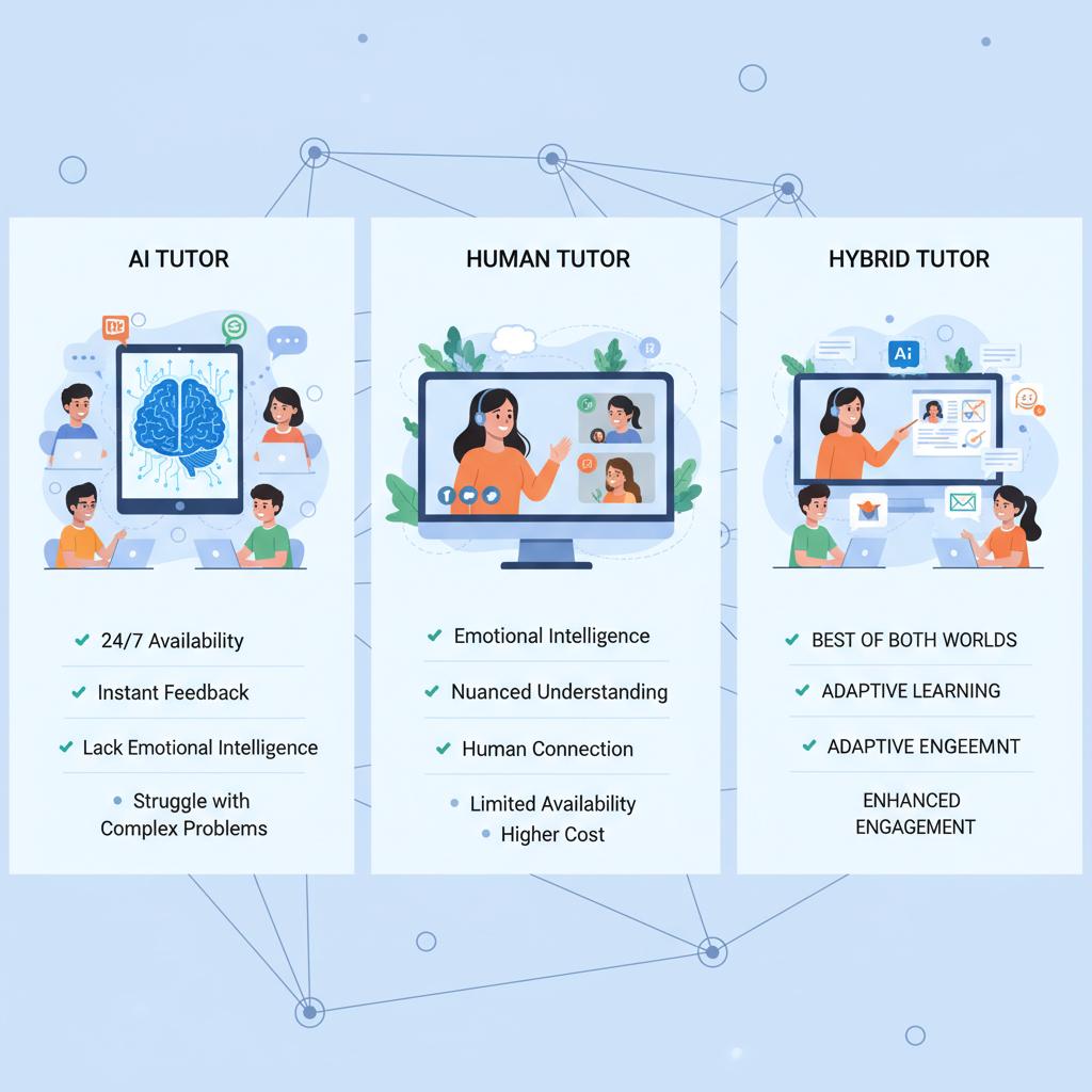 | Kryterium | Korepetytor AI | Człowiek | Hybryda |