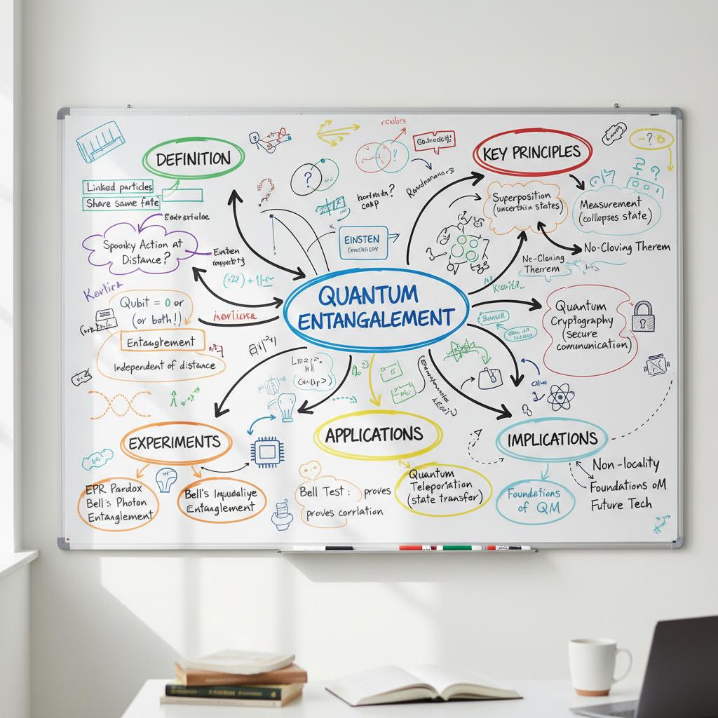 - Splątanie: Zjawisko, w którym stan jednej cząstki jest nierozerwalnie związany ze stanem innej, mimo braku fizycznego kontaktu.