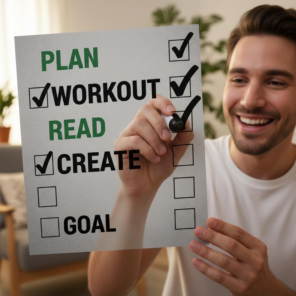 - Eksperymentuj – Sprawdź, co u ciebie działa (habit tracker, aplikacja, kartka na lodówce).