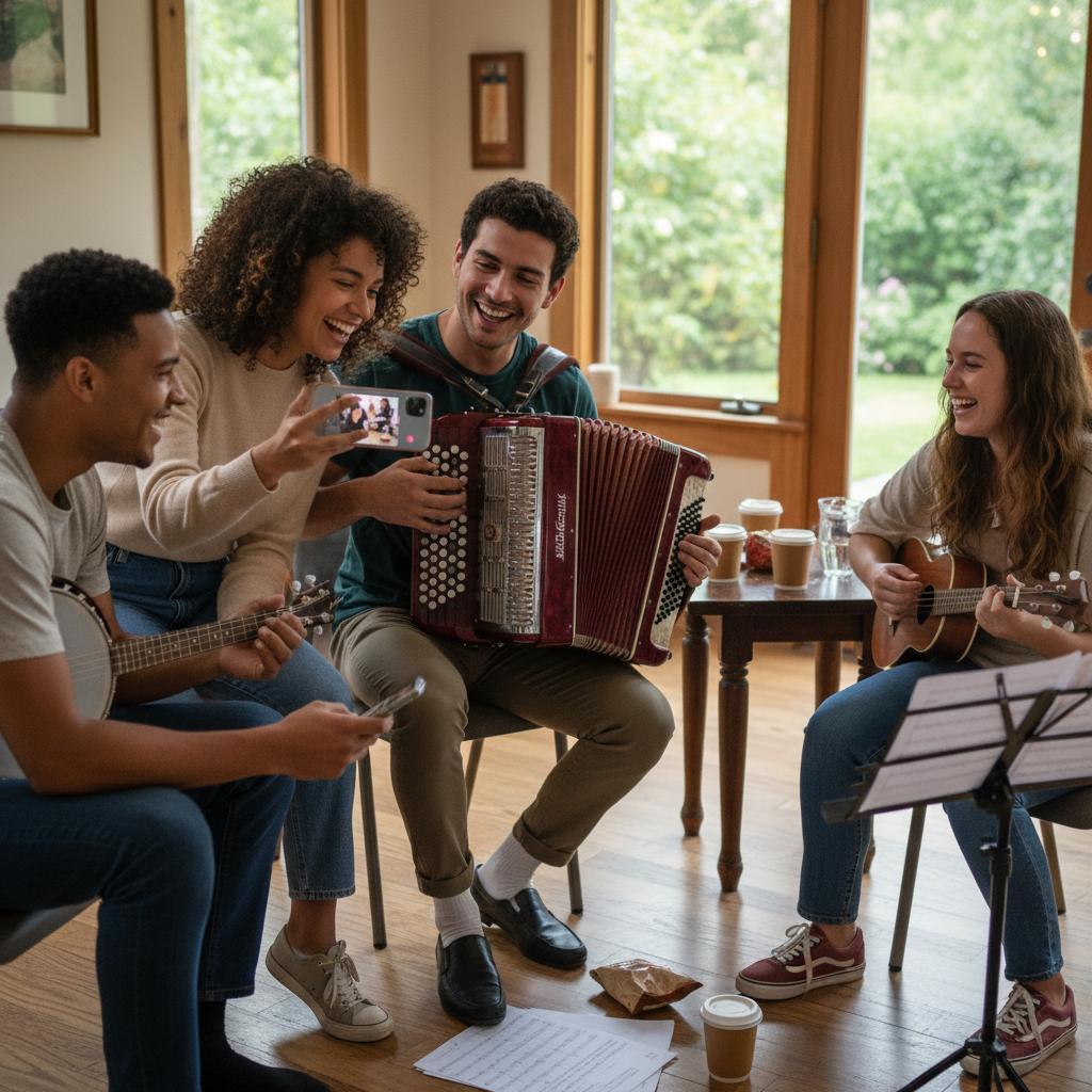 - Dołącz do społeczności online: Fora, grupy na Facebooku, wyzwania muzyczne – dzielenie się postępami daje zastrzyk energii.