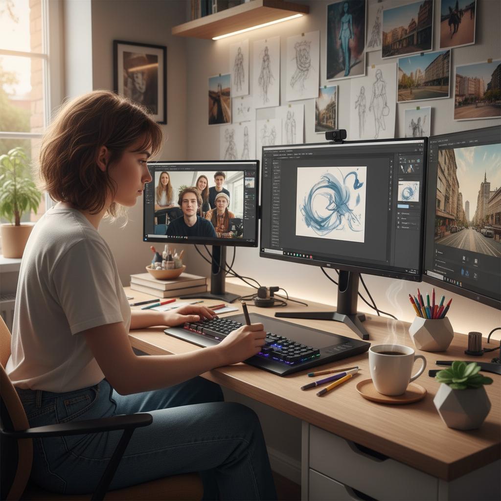 Czy tradycyjny szkicownik przegrywa z tabletem i AI? Rzeczywistość jest bardziej zniuansowana. Tablety graficzne (np. Wacom, Huion), aplikacje takie jak Procreate czy Photoshop oraz narzędzia oparte na AI (jak korepetytor.ai) stają się codziennością w nauce plastyki online.