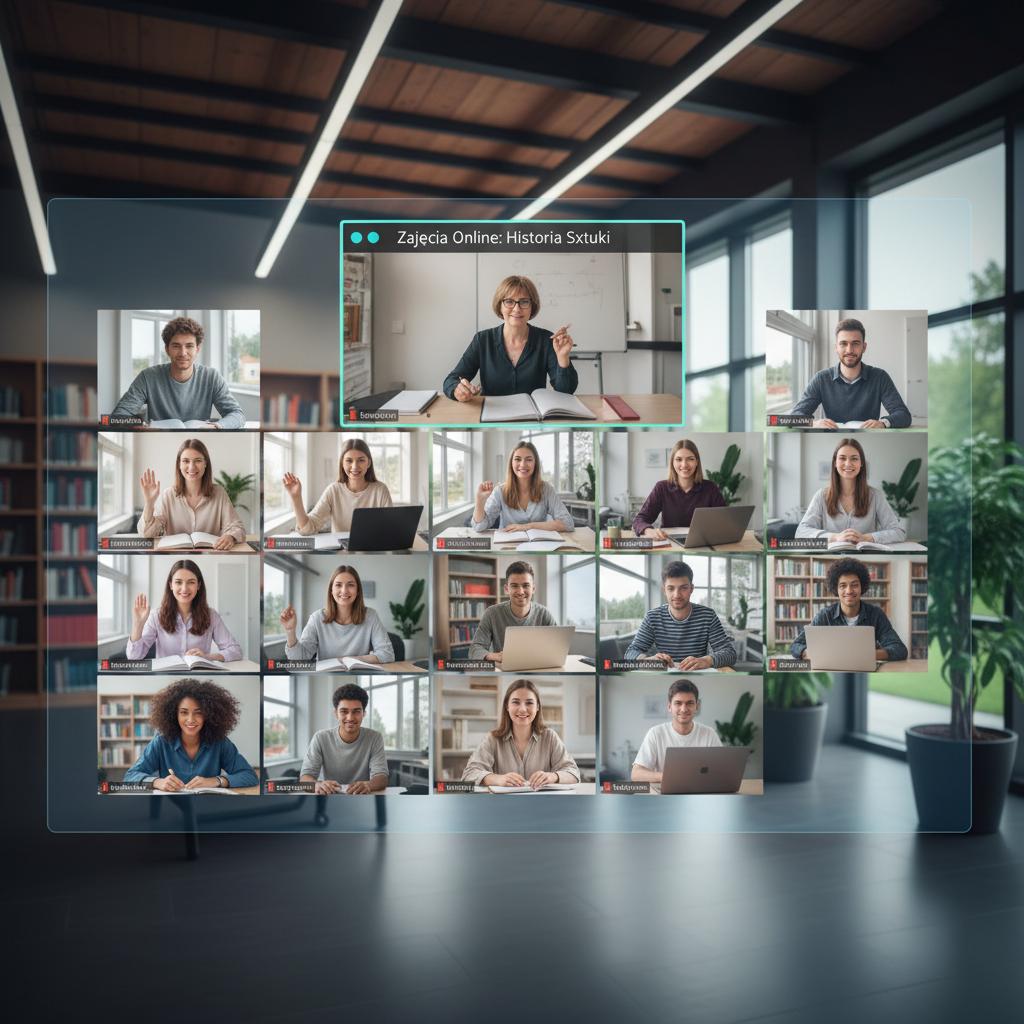 Przykład 3: Grupa uczniów spotyka się na platformie hybrydowej, gdzie część zadań wykonują samodzielnie, a część konsultują na żywo z nauczycielem – łącząc zalety obu światów.