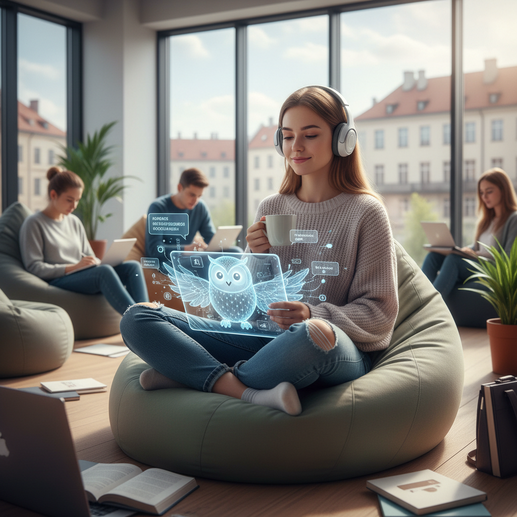 - Asystenci AI — udzielają natychmiastowych odpowiedzi, tłumaczą trudne zagadnienia, a nawet motywują do nauki.